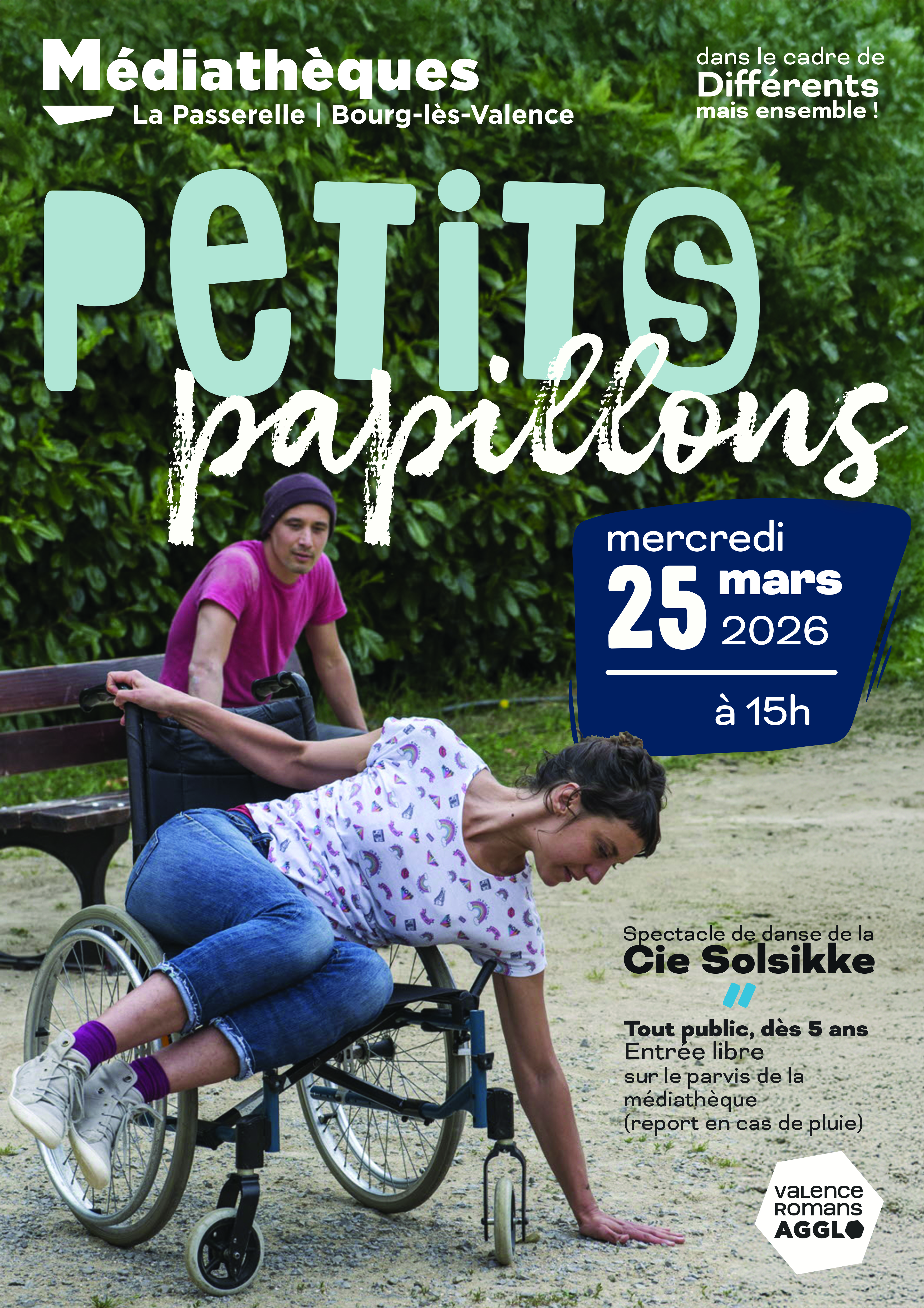 Mercredi 25 mars (15 h) : Spectacle « Petits papillons » / Solsikke Compagnie avec Marie Chataignier et Xavier Kim (sur parvis médiathèque) (dès 5 ans / entrée libre) (Dans le cadre de Différents mais ensemble)