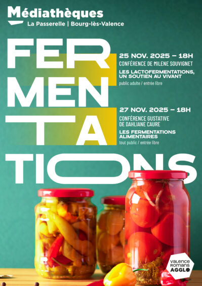Jeudi 27 novembre (18 h) : Les fermentations alimentaires, conférence gustative par Dahliane Caure (public adulte, entrée libre)