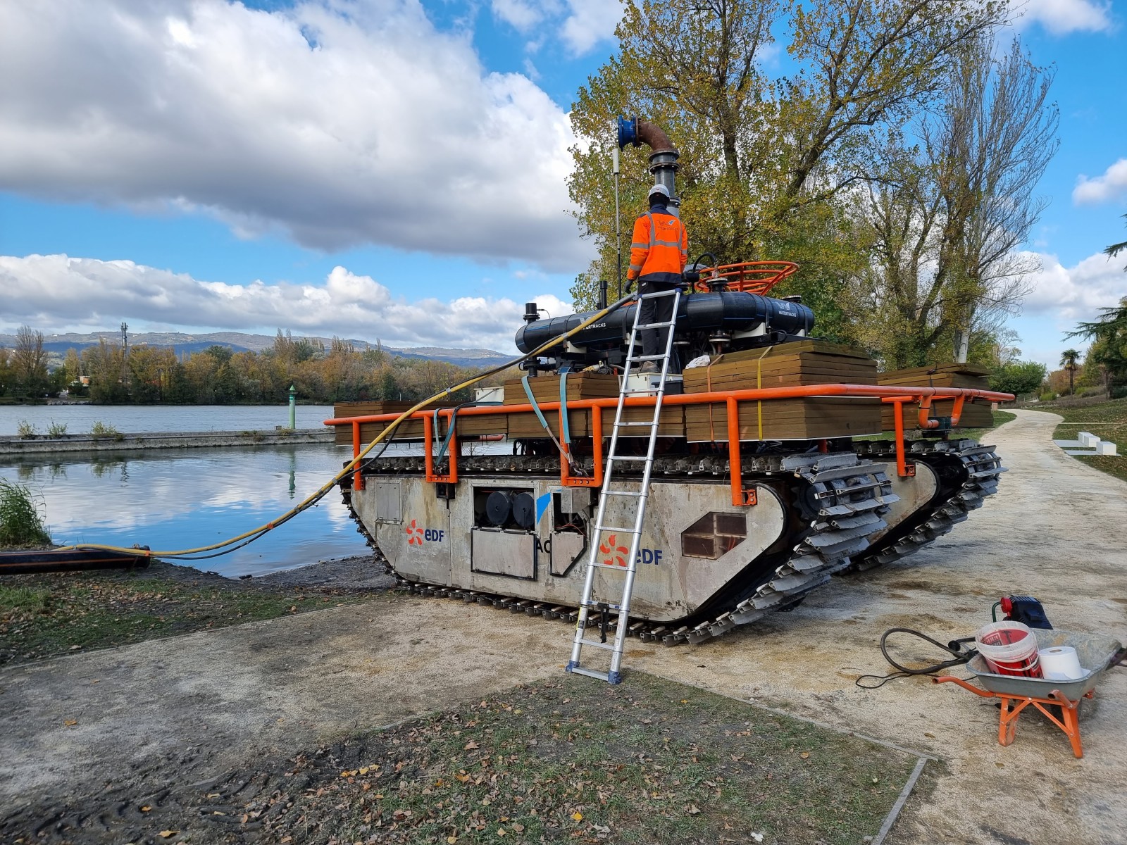 Grâce à une solution de dragage, le robot Nessie, en référence à la créature du Loch Ness, arpente actuellement les fonds du bassin et se déplace sur la base d’un chenillard sous-marin. A voir !