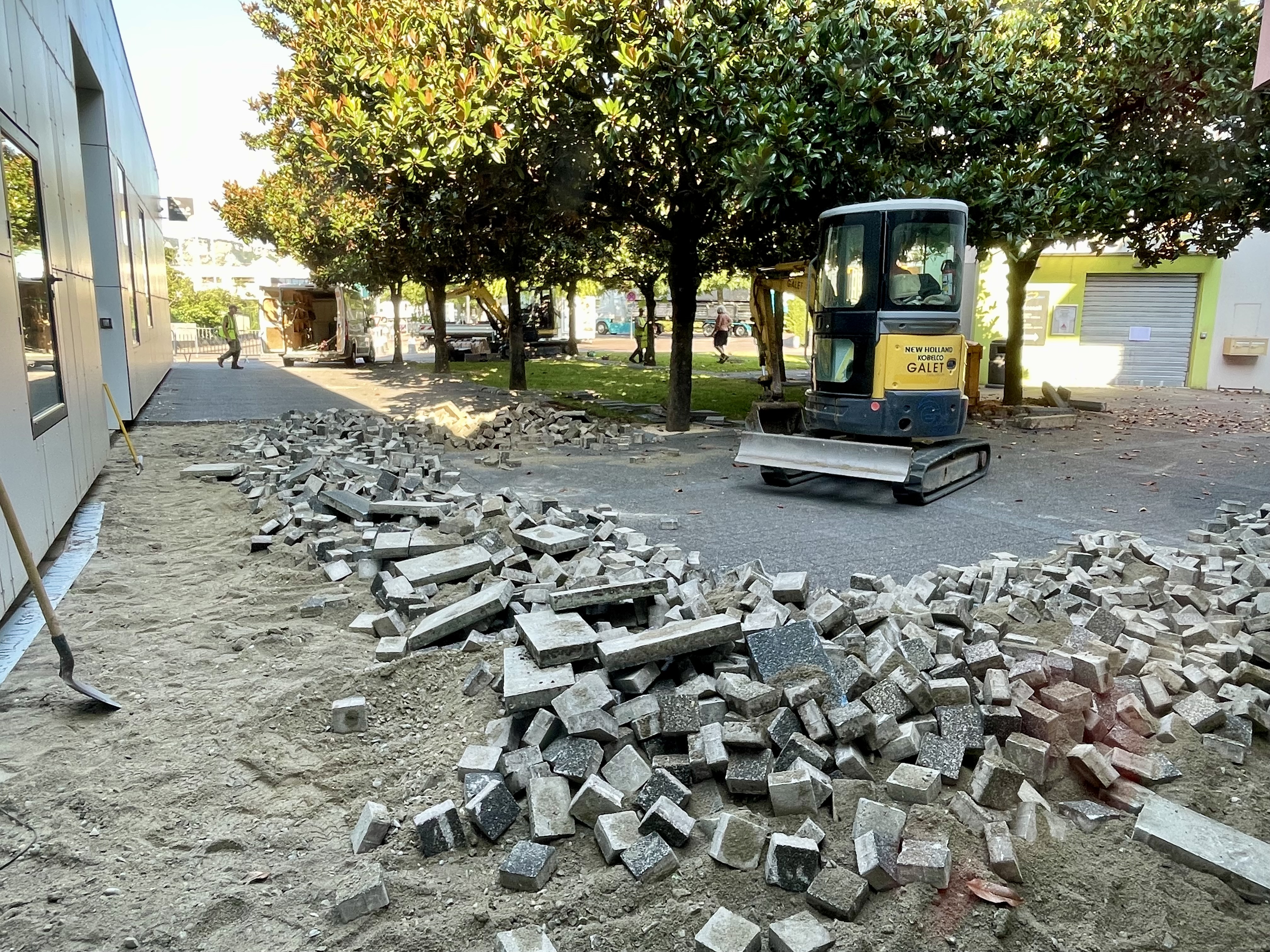 Avec le temps, les pavés du parvis se sont progressivement soulevés, en raison du développement des racines des magnolias. Cette dégradation du revêtement rendait la circulation difficile et présentait des risques de chute pour les piétons. La réfection du parvis s’imposait donc pour garantir la sécurité des usagers, tout en préservant ces arbres emblématiques du site.